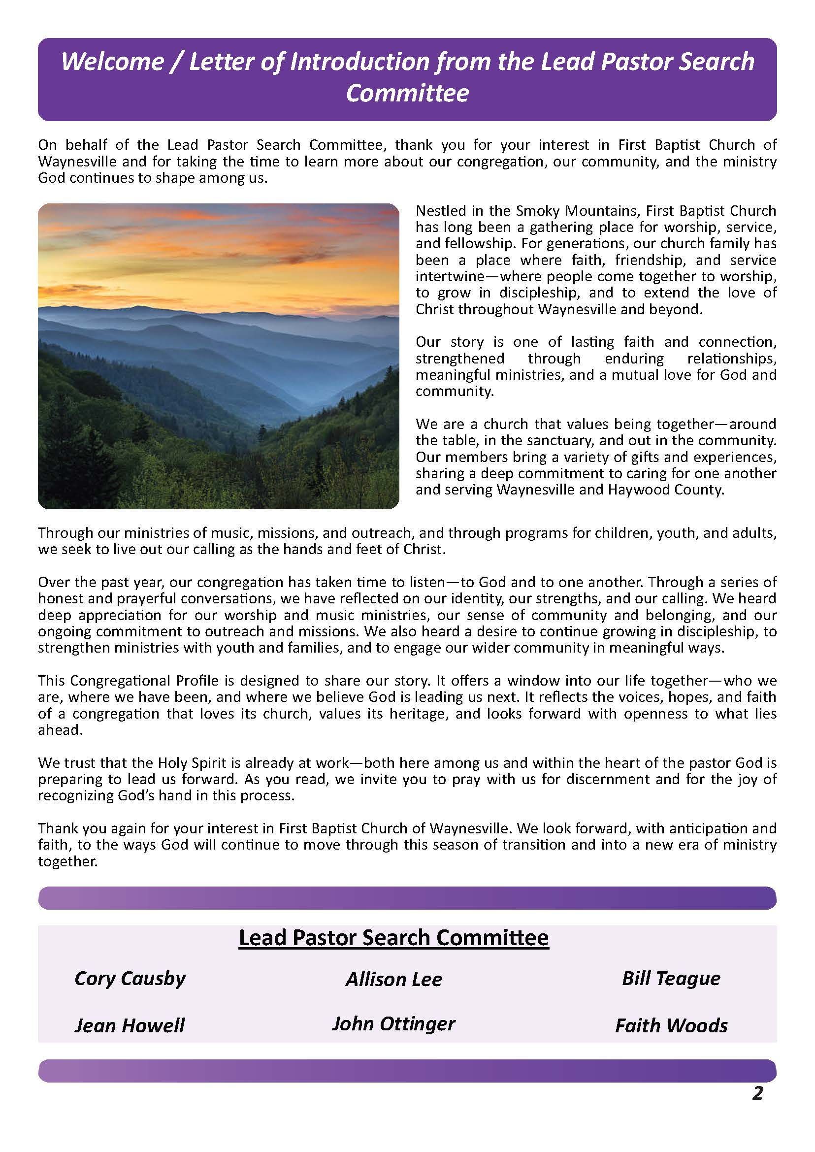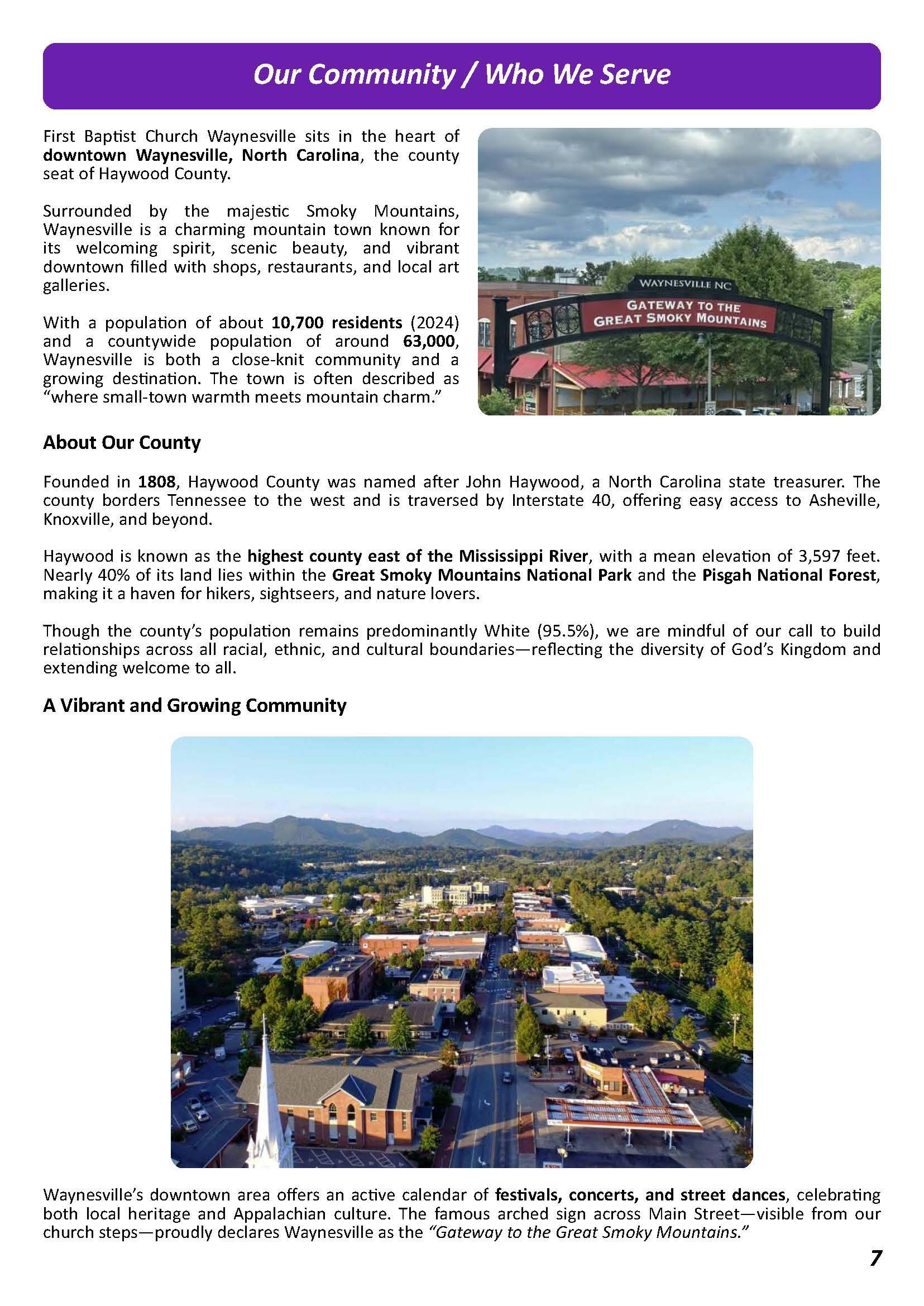 Click here to download the FBC Waynesville Church Profile.